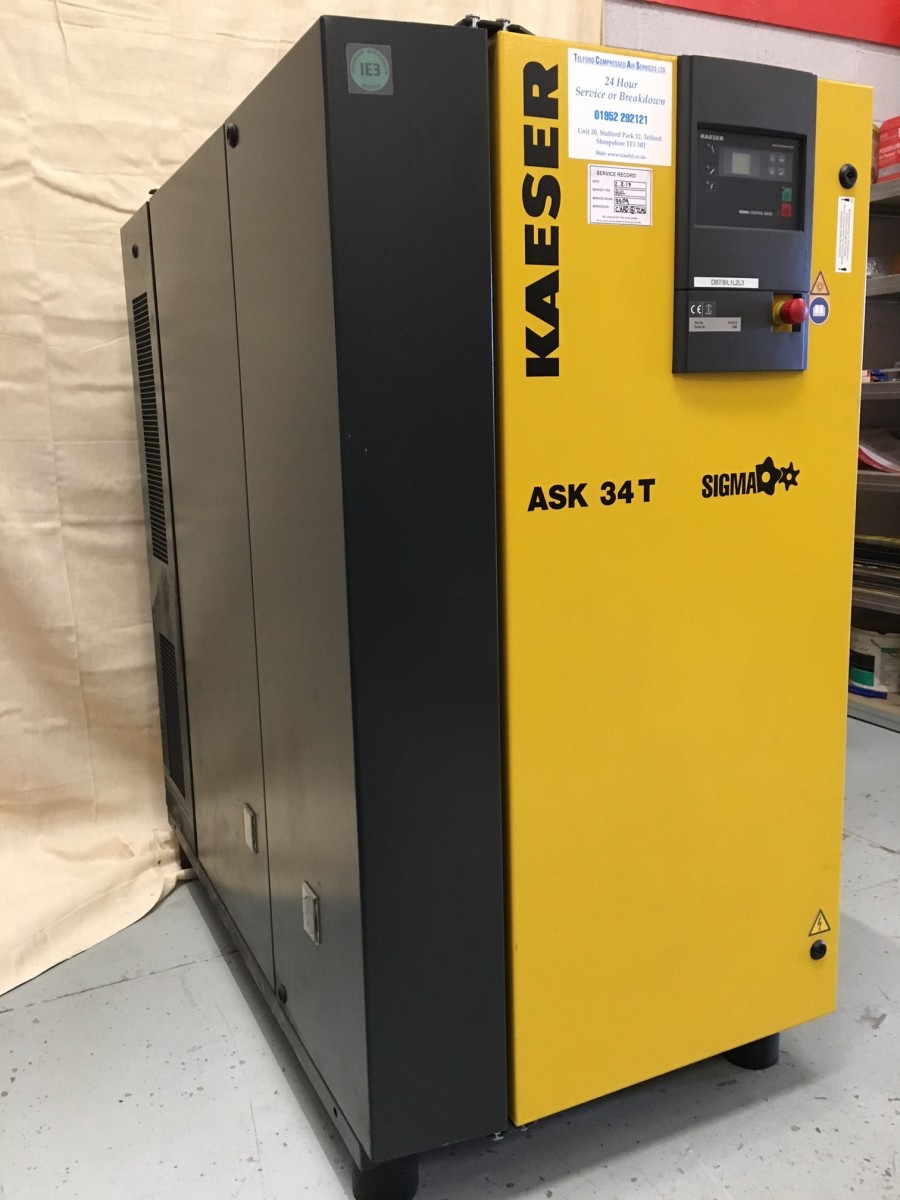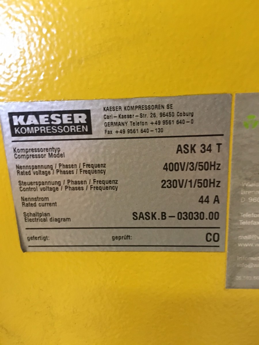 Like new, 2015 18.5kW HPC ASK34T SCB Screw Compressor c/w Integrated Refrigerant Dryer. Very low hours. 123 CFM @ 7.5 Bar