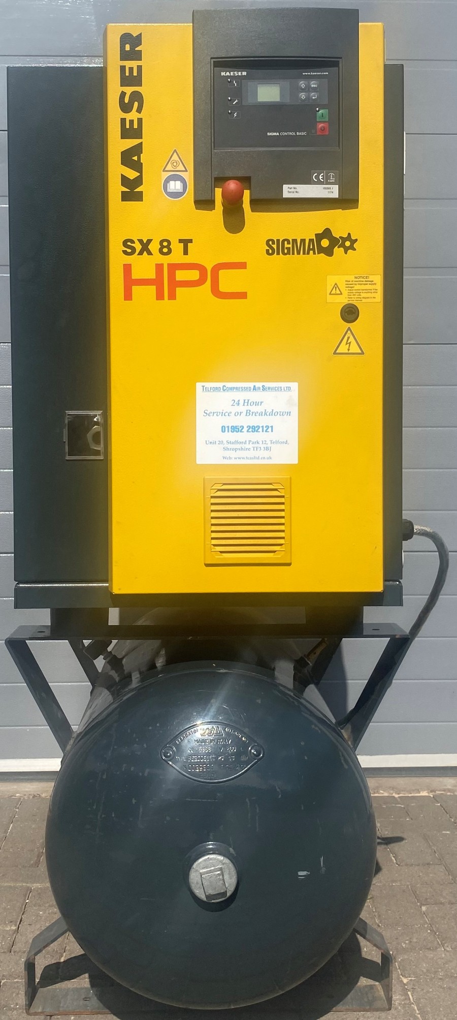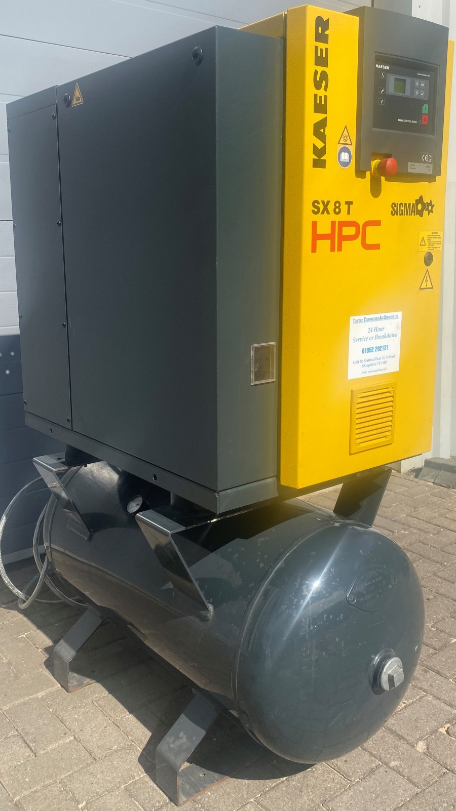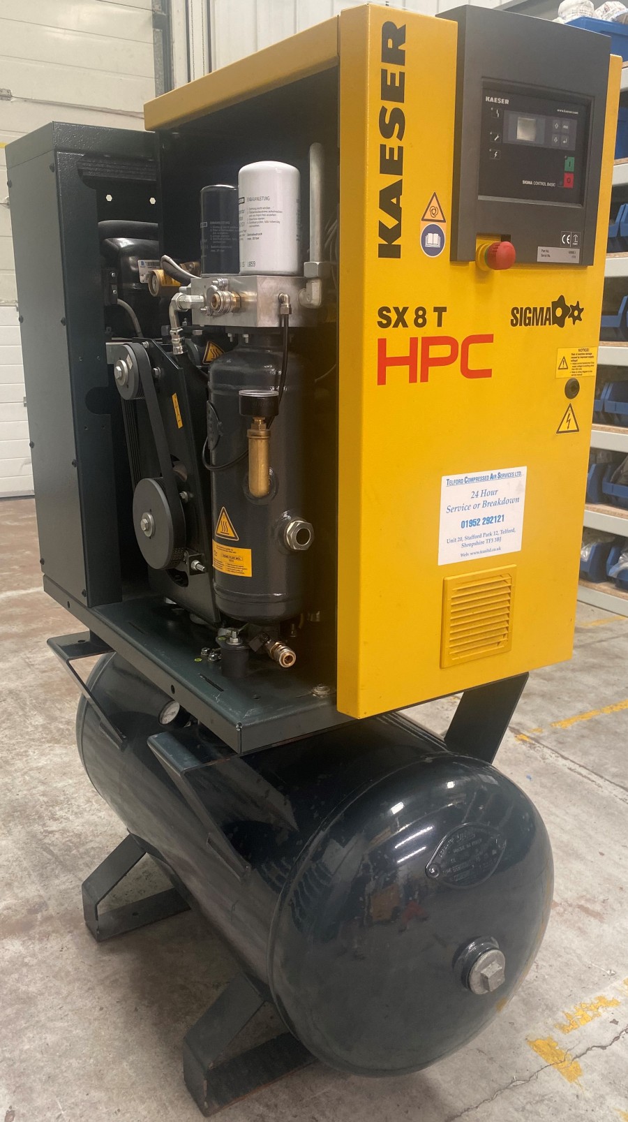 HPC SX8 T Receiver mounted Screw Compressor C/W Refrigerant Dryer with low running hours. This machine has full service history carried out by ourselves using genuine HPC spares.